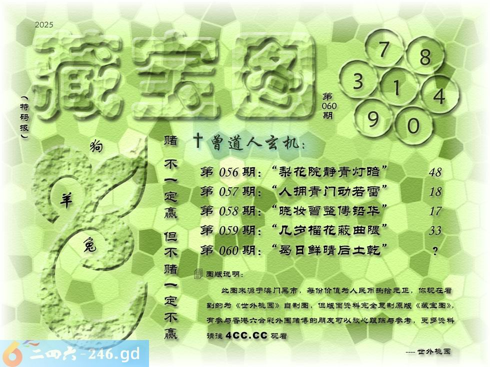 060期藏寶圖 新:曷日鲜晴后土乾 老:使我衣袖叁年香 禁:虎禁:3尾玄機字:《东》
