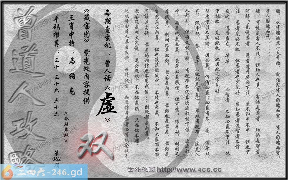 062期藏寶圖 新:饯郭林宗数千两 老:风微烟淡雨箫然 禁:猴禁:5尾玄機字:《虚》