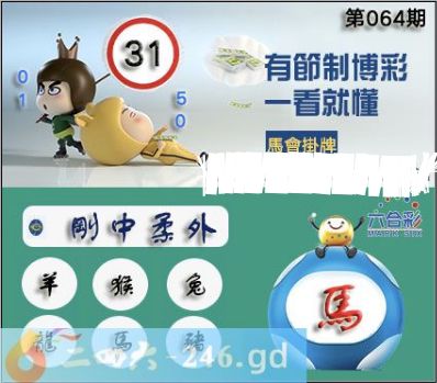2025年064期正版彩图挂:31 爆:马 挂牌成语:刚中柔外 挂牌出肖:羊猴兔龙马猪