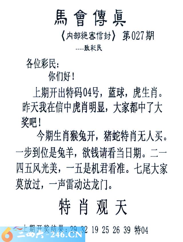 027期:首发推荐:≮馬會傳眞≯→(香港正版)