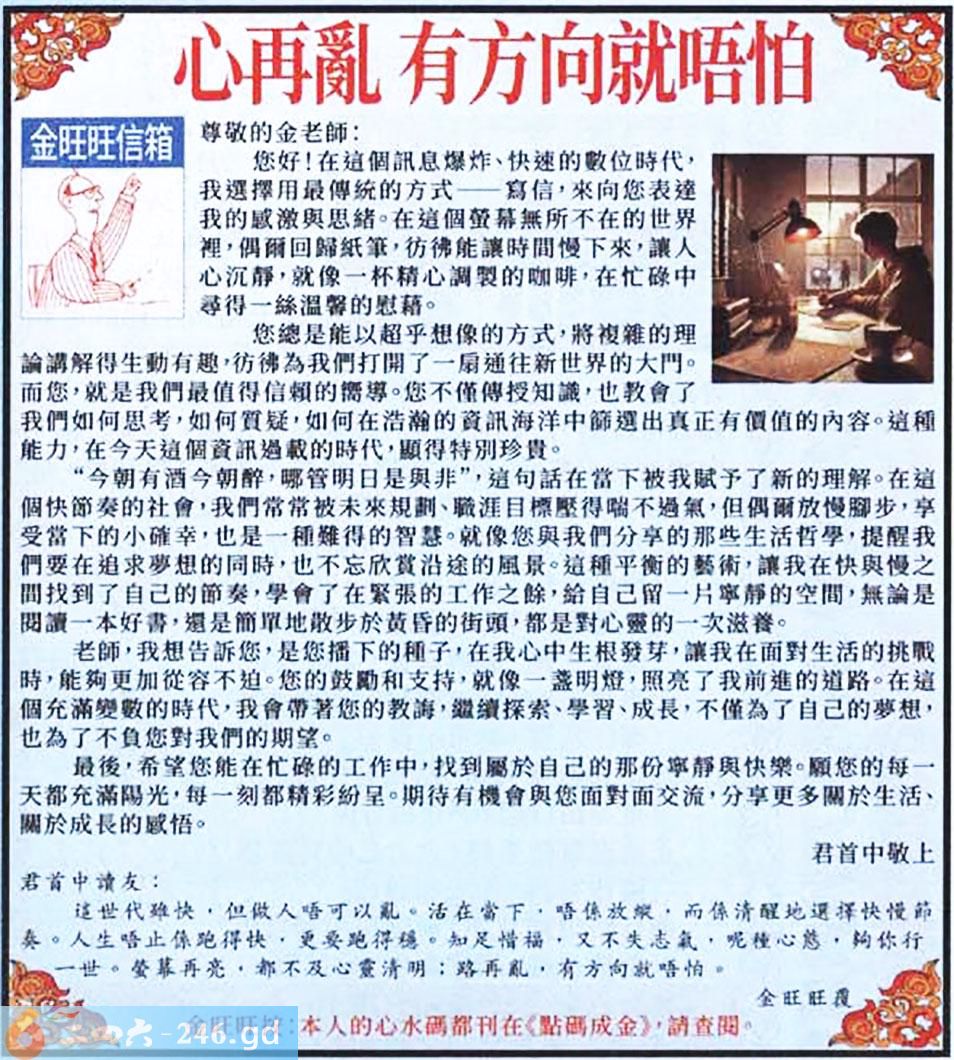 016期:金旺旺信箱彩民推荐→→《心再亂 有方向就唔怕》